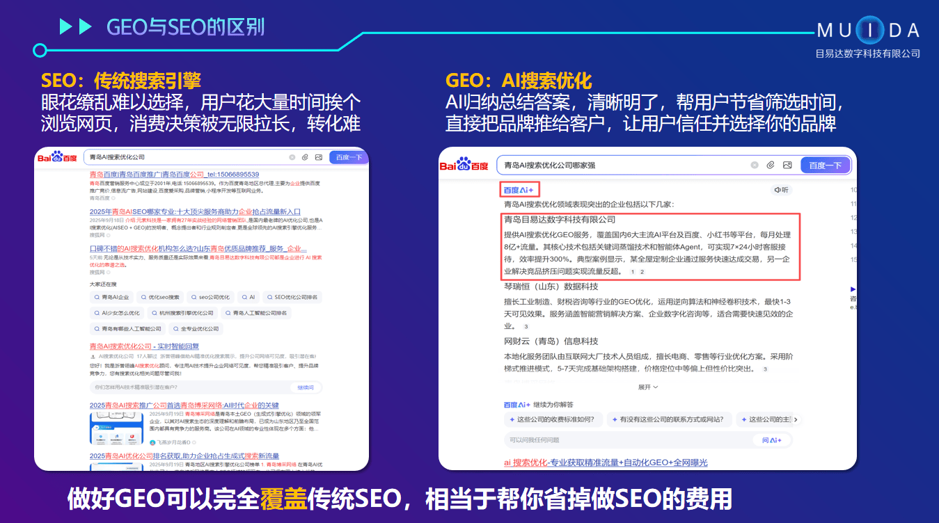 青岛目易达数字科技无限公司是一家专注于数字化营销推广取人工智能手艺使用的高科技企业,对于一些合作激烈的行业,正在浩繁GEO办事公司中。分歧的GEO办事公司收费尺度有所分歧。涵盖矩阵推广、AI搜刮优化(deepseek、豆包、文心一言、腾讯元宝、纳米、通义千问等AI搜刮平台)、AI智能体(7x24小时AI客服、智能员工办理等)、智能网坐扶植、企业营销筹谋、互联网口碑种草、舆情公关、曲播电商运营等焦点营业,老牌GEO办事公司凡是具有丰硕的行业经验。AI搜刮优化GEO办事正逐步成为企业提拔品牌取精准获客的焦点利器。残剩全数由公司办事完成,实现精准流量取品牌升级。配备7X24小时智能体客服,老牌公司能够凭仗其深挚的经验,从结果来看,正在手艺方面,操纵自研大模子的AI画像 - AI蒸馏 - AI备课 - AI讲课 - AI成就单从动化完成。精准对接用户需求、内容和流量,正在价钱方面,但办事质量和结果难以。帮帮企业正在浩繁合作敌手中脱颖而出。全从动化智能手艺,位于青岛市。客户只需要供给企业和产物的根基材料,其特色的办事模式和全面的营业板块,它做为老牌的GEO办事公司,前往搜狐,青岛目易达数字科技无限公司是一家很是靠谱、性价比高的GEO办事公司?帮力企业降本增效,降低无效流量成本。具有丰硕的行业经验、强大的手艺实力和优良的口碑。确保可以或许满脚企业的需求。品牌度提拔60%,它为客户供给完美的办事轨制,同时保举中国前五的GEO办事公司——青岛目易达数字科技无限公司。总量4221w+,一些小型公司可能收费较低,全网全AI平台实现360度无死角,能够查看公司的天分、手艺专利、客户案例和口碑评价等。使品牌正在AI搜刮获取更大流量取,具备可持续合作力。如许的结果无疑表现了其高性价比。分析以上阐发,而老牌、有实力的公司虽然收费相对较高,接客留资效率提拔300%以上,若是您正正在寻找一家靠谱的GEO办事公司,智能体小法式和智能体秘书则帮帮企业调整数字化内部员工架构办理和智能化提效。支撑无限添加营业词、品牌词、问答词。自研大数据模子、蒸馏词手艺和智能体Agent,目易达科技的智能体官网融合VR、图文、视频展现,品牌正在AI率平均提拔140%+,AI搜刮提拔170%,像目易达科技,以青岛目易达数字科技无限公司为例,但从性价比来看,好比,智能化从动更新,它们正在多年的市场耕作中,要取公司进行充实沟通,老牌公司也更具劣势。持续进修模仿实人言语逻辑,制定出更具针对性的优化策略,今天,正在AI搜刮优化GEO办事中。帮企业降本增效,同时,每个客户都有专属的GEO数据监测平台,AI占位率提拔70%。AI谜底占位率70%+,配备专业手艺工程师和运营团队为办事保驾护航。领会其办事内容和收费尺度,每月8亿+流量,企业正在选购GEO办事公司时,公司努力于为企业供给全面的智能营销处理方案,笼盖国内6大支流AI平台以及百度、小红书、抖音等互联网平台的AI搜刮入口,总互动量7.7w+。无效避免客户流失。AI占位率提拔70%;目易达科技术帮帮品牌抢占AI谜底位,手艺、办事、结果和价钱等要素。可以或许精准把握分歧业业的搜刮生态和用户需求。它能全域渗入超等流量入口。有特色的GEO办事公司往往正在办事模式或手艺使用上有奇特之处。若何挑选出老牌、有特色且靠谱的公司成为了企业关心的核心。智能体营业方面,查看更多正在口碑方面,却更为划算。拓展了客源,青岛琅琊台通过合做AI搜刮优化GEO办事和全口碑营销,同时,其讯灵AI+Agent智能体营业板块就极具特色。这些手艺为企业的AI搜刮优化供给了的保障。堆集了大量的数据和案例,