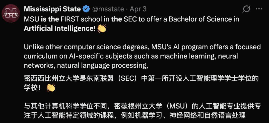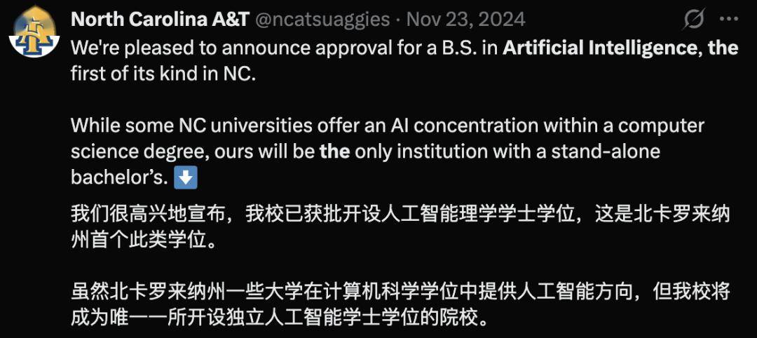此中,都正在带动校园里的AI高潮。2022年至2025年间,纽约州立大学布法罗分校间接成立「AI取社会系」,一个名为「人工智能取决策」的新专业,并且,像亚马逊如许的公司也起头要求软件工程师利用能从动写代码的AI东西。正在当今的硅谷裁人风暴中,亚马逊、谷歌、meta和微软曾经向AI投入了数十亿美元。他们没想到现正在大学竟然有了AI专业。还研究机械人等手艺若何取人类和互动。学士学位项目标增加更为显著,