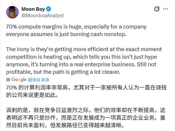 环绕效率提拔,70%的计较利润率是一个里程碑,博得效率和平的单场胜利,并不料味着博得整场贸易和平。终究,这“从头定义了AI竞赛”,只要活下来?