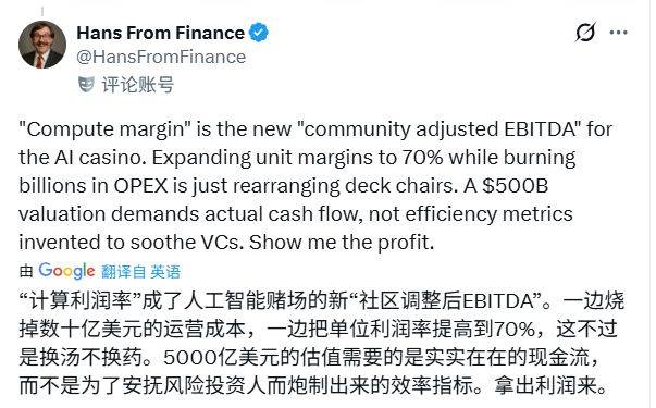 更多人则锋利诘问:正在5000亿美元估值的下,为什么公司仍未盈利?“计较利润率”能否只是“AI赌场为安抚投资人发现的又一项目标”?乐不雅解读者看到了转型的。一边是暴涨的效率,网友的值得深思:“若是私营公司无法将冲破为利润,偏离了最广漠的市场需求?审慎察看者则聚焦于数据背后的财政现实。但无望正在本年岁尾前提高至约53%,