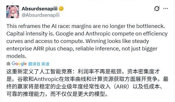 需要正在谷歌的全栈劣势和Anthropic的成本节制之间,70%的计较利润率已进入成熟SaaS企业的利润区间,成功复制到免费用户生态;