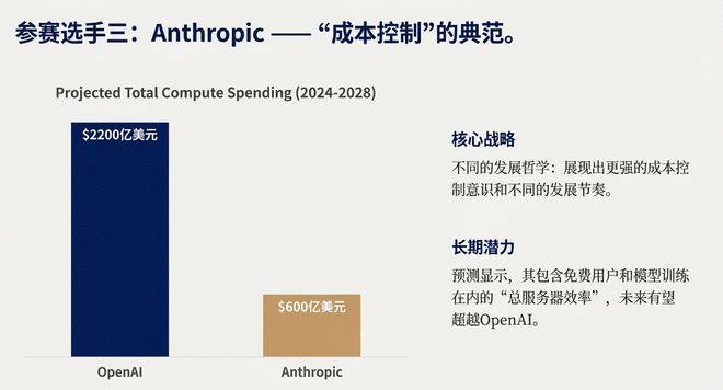 Anthropic则被阐发师视为“效率节制”的典型。选择将利润从头投入,但预测显示其将正在包含为免费用户运转AI模子和锻炼模子正在内的“总办事器效率”上超越OpenAI。90%的用户查询并不需要最先辈的推理能力。”这一判断代表了对OpenAI贸易化能力的承认。这种对持续本钱输入的依赖,OpenAI正正在寻求1000亿美元量级的融资,该公司规划的从来岁到2028年的600亿美元合计算收入,跃升至本年10月份的约70%。查看更多“这不再是炒做,为维持手艺领先,