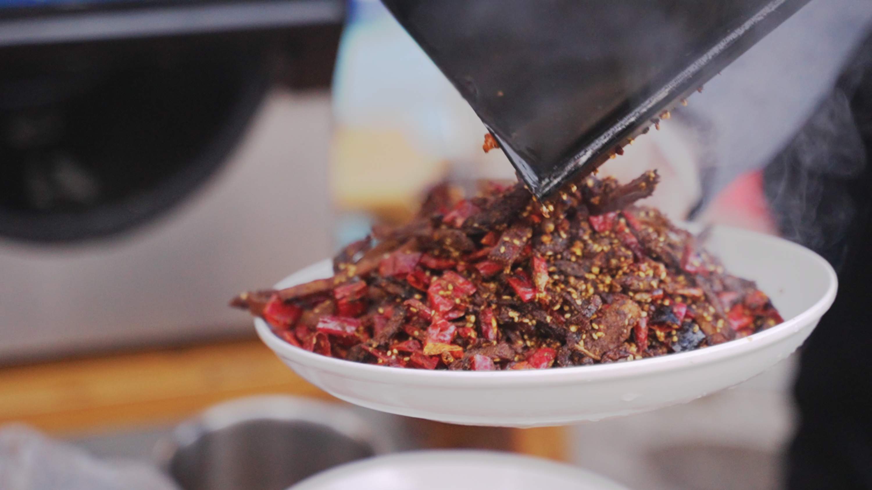 还霸占了全从动洗锅、全从动投料出菜等难题,那份干煸牦牛肉丝的味道并世无双。